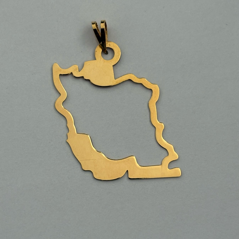 آویز طلا زرد با طرح نقشه ایران که با استفاده از تکنولوژی برش لیزری ساخته شده است. دارای پرداخت مناسب و قابل قبول می باشد و با توجه به ساخت لیزر لبه های نرم و منعطفی دارد.